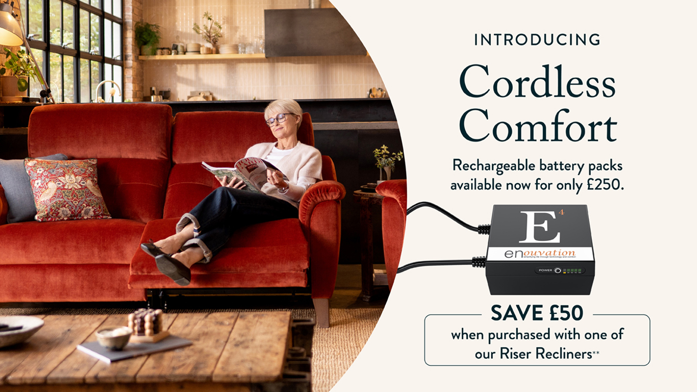 Designed to work with our Clever Comfort™ Chairs, Sofas, and Adjustable Beds, our new rechargeable battery packs are neat, compact and powerful - order yours today for only £250