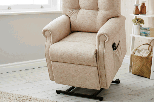 The Bicester Riser Recliner has an attractive button back design that aligns with the natural curve of your back and has the additional benefit of being able to recline or gently raise you to your feet at the touch of a button.