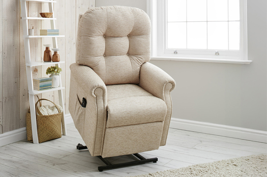 The Bicester Riser Recliner Express has an attractive button back design that aligns with the natural curve of your back and has the additional benefit of being able to recline or gently raise you to your feet at the touch of a button.
