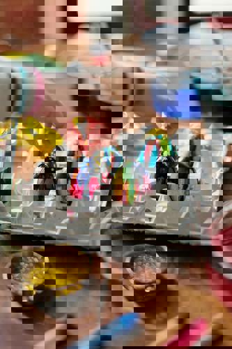 The simplest of designs. Take your favourite paint colours and add stripes, polka dots and any other patterns you can think of.