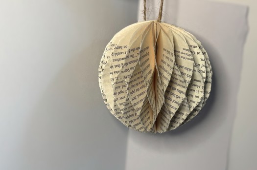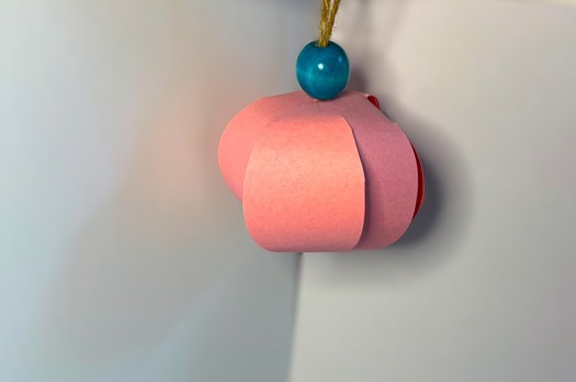 - Add ribbon about halfway down the straight edge, glue both flat sides and wrap your ball round to stick together. To make sure your ball doesn’t come undone, place paper clips around the seam.