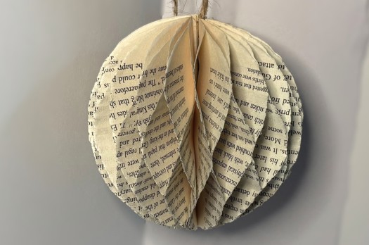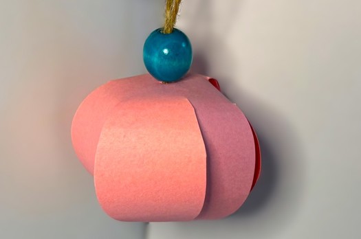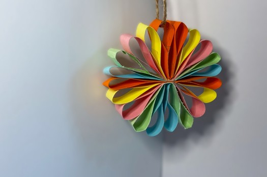 - Add ribbon about halfway down the straight edge, glue both flat sides and wrap your ball round to stick together. To make sure your ball doesn’t come undone, place paper clips around the seam.