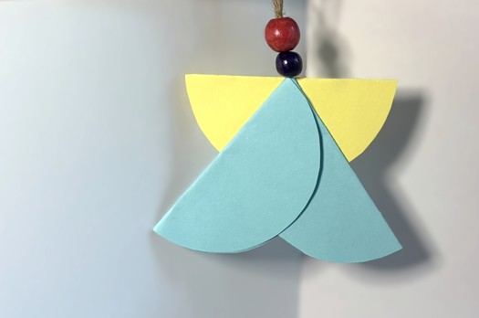 - Stick the inside of the final circle together with double-sided tape. On the outside of the semi-circle, place a strip of double-sided tape, stick the semi-circle to the other semi-circles to form the wings. Ensure the straight edge is facing up.