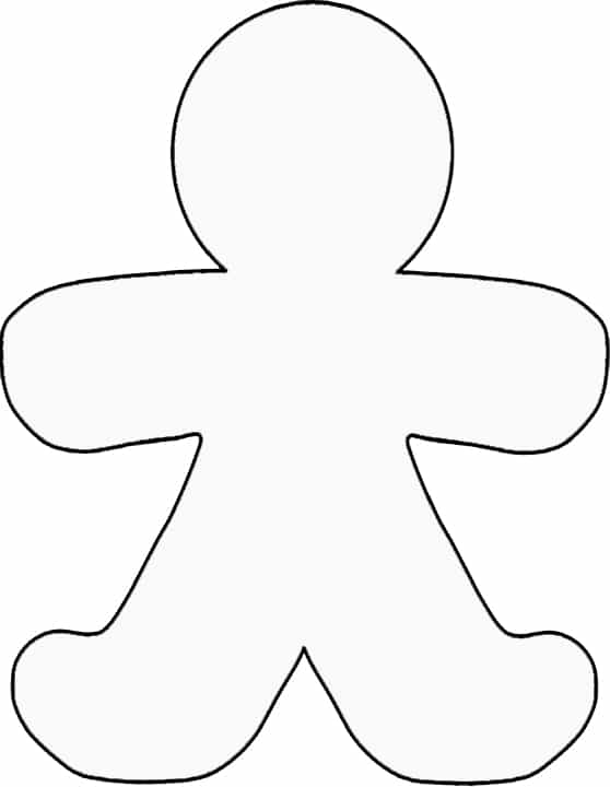 - On a piece of paper, draw the shape of a gingerbread man (or use our free template) and cut it out. Trace the template onto the brown fabric so you have two identical gingerbread man shapes and cut them out.