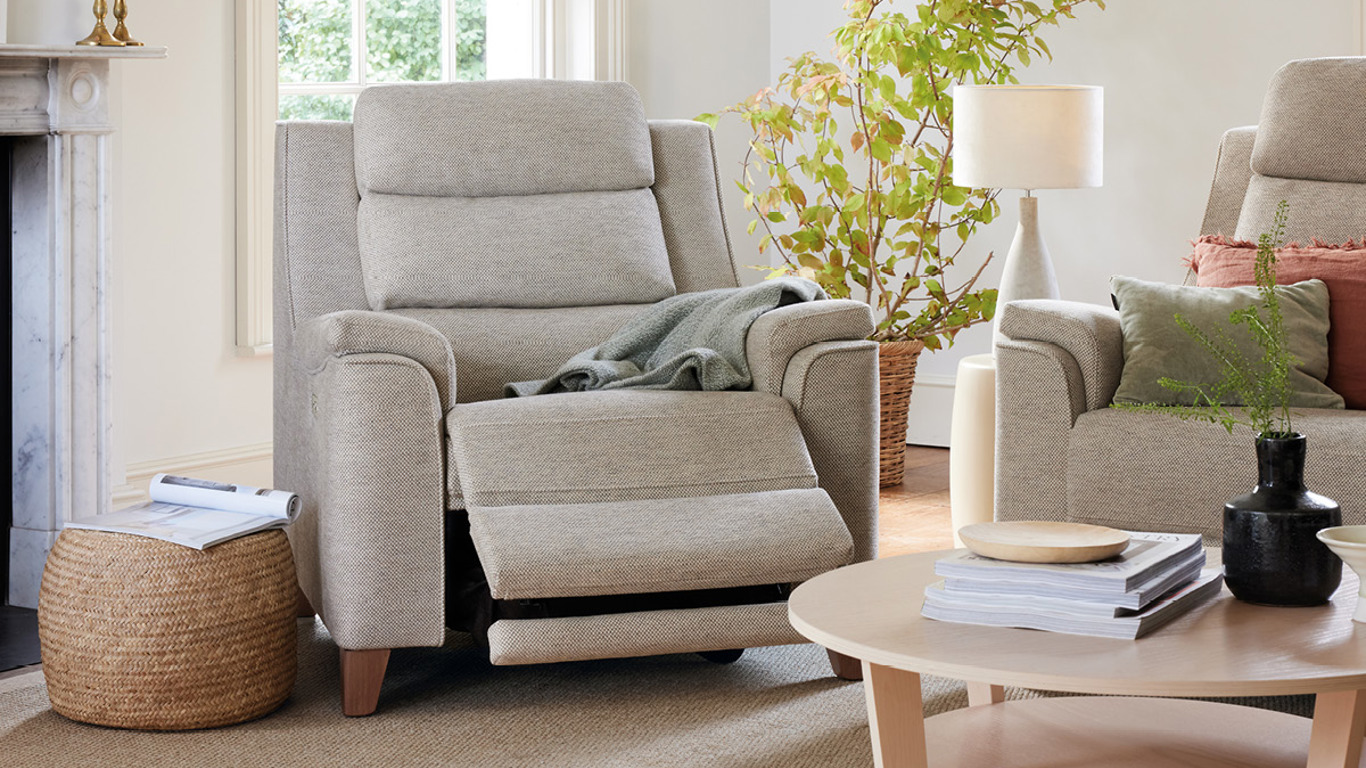 Maintain a modern look by keeping the area around your recliner clutter-free. Functional storage like side tables with baskets and ottomans can help to keep mess out of sight for a sleek, minimalist look. You could even choose other furniture (such as coffee tables and TV units) with clean lines and simple designs to complement your HSL chair, sofa or recliner.