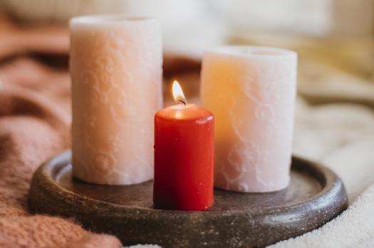 Light candles at varying heights to add a flickering warm light and a cosy display. Candles are inexpensive and are the perfect way to choose a seasonal scent that will elevate your home.