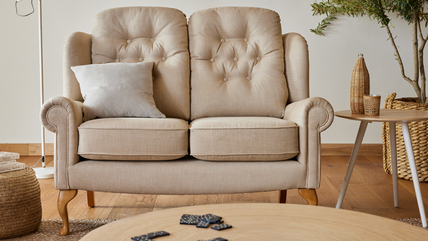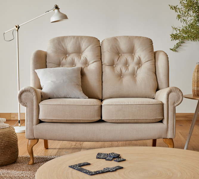 This is an exceptionally comfy 2 seater sofa, thanks to its cushioned arms, deep wings and plush buttoned back.