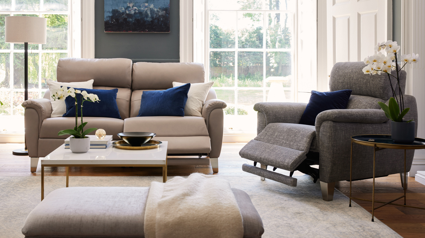 Check out our three-piece Carnaby suite, designed with a combination of support and retro ‘60s style in mind. Or, for something with relaxation at the heart, browse our Burrows Relax Collection: the perfect suite for a cosy night in.